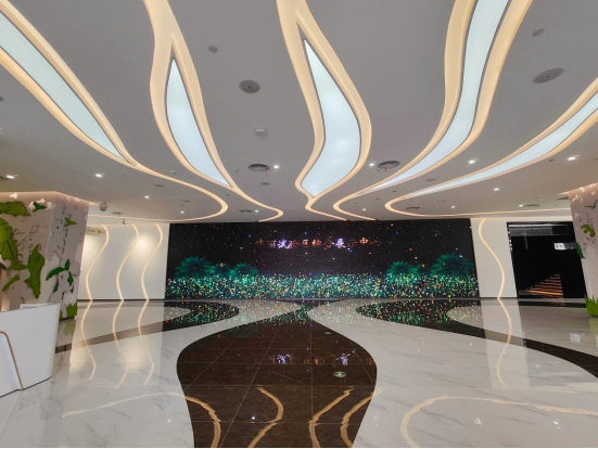 造型象孔雀一般美麗,建設就要如刺繡一樣精心。項目結構形式為現澆混凝土框架結構+鋼屋面結構,整個建筑以展覽館中心為軸兩邊對稱,左右翼建筑高度為20.56米,中部建筑高度48.7米(塔尖高61米),外裝檐口部分以鋁板為主,屋面以鋁板及玻璃為主,外立面以玻璃幕墻、石材幕墻及穿孔鋁板為主。裝修難度最大的為中部,為多層斜屋面異形鋼屋架,玻璃為異形玻璃。